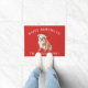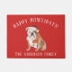 Paillasson de Noël adorable avec un Bulldog anglais portant un chapeau de santa sur un arrière - plan rouge festif.