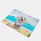 Le chien mignon assis sur la plage est une idée cadeau parfaite pour quelqu'un qui aime cette race de chien.