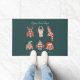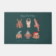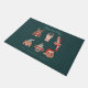 Tapis de Noël Whimsical et amusant avec illustration dessinée à la main de chiens mignons portant des accessoires d'hiver. L'arrière - plan est vert.