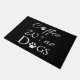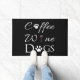 Le Coffee Wine Dogs Door Mat est parfait pour les amateurs de café, de vin et de chiens. Le design du tapis de porte comprend un texte fantaisie pour le café avec une garniture de tasse de café pour la lettre "o", vin qui contient un verre de vin rouge pour la lettre "i", et les chiens avec un ornement empreinte de patte en remplacement du "o". Autres cadeaux disponibles avec ce design aussi.