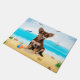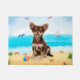 Le chien mignon assis sur la plage est une idée cadeau parfaite pour quelqu'un qui aime cette race de chien.