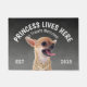Chihuahua en colère Amoureux des chiens personnalisé mat de bienvenue. Ce tapis de bienvenue peut être personnalisé avec le nom de votre chien, le slogan peut aussi être changé ou vous pouvez utiliser une photo de votre propre chien (assurez-vous qu’elle est transparente). Texte : Princesse vit ici... Tous les traitements sont les bienvenus Modifier le design pour changer la police, les couleurs et la couleur arrière - plan. Lorsque vous remplacez l'image de votre chien, utilisez une image transparente. Fait un cadeau merveilleux pour une fête de ménage, vacances, amoureux de les chiens et la plupart de toutes les occasions.