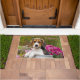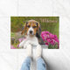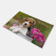 Un jeune chiot tricolore chiot-eyed de beagle se repose en fleurs d'un rose d'admist de bidon à lait que le beagle est une race de chien de scenthound avec un tempérament doux. Une photo mignonne de chienchien prise par Katho Menden. Ce tapis de porte d'impression de photo est une idée de cadeau pour des amoureux de les chiens. http://www.zazzle.com/kathom_photo