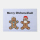 Est-ce amusant d'accueillir vos invités ? ! Ce tapis de porte montre mon homme en pain d'épice juif portant sa yarmulke. Puis à côté de lui se trouve mon pain d'épices Père Noël. Le texte peut être supprimé ou modifié. Et vous pouvez aussi changer la couleur arrière - plan. Conçu par Sheila Cicchi, Brownielocks.com. Tous droits réservés.