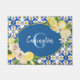 Nouveau nom de famille et monogramme de porte. Arrière - plan de tuiles bleu et jaune méditerranéen. Petit.
