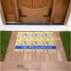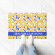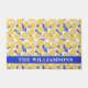 Ce somptueux tapis de portes personnalisées présente une illustration simple motif de tranches de citron jaune et de formes florales bleu cobalt. Super idée cadeau !