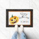 Paillasson Citrouille à points noirs orange Nom Joyeux Hallow