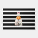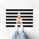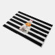Tapis de porte Citrouille "Bouh" d'Halloween. C'est un design d'Halloween mignon dans des rayures modernes noir-blanc.