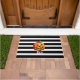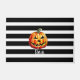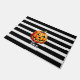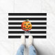Tapis de porte Citrouille "Bouh" d'Halloween. C'est un design d'Halloween mignon dans des rayures modernes noir-blanc.