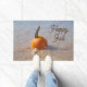 Citrouille orange en éclaboussant l'eau sur une plage océanique. Le texte est modifiable ou peut être supprimé.