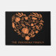 Joli citrouilles de chute orange peint et feuillage en forme de coeur, avec orange sur noir, customisé avec votre nom de famille. Simple ambiance d'automne.