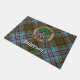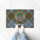 Le badge de crête Clan Anderson entouré d'une courroie et boucle sur l'arrière - plan tartan. Texte personnalisé.