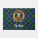 Clan Gordon crête badge entouré d'une sangle et boucle sur l'arrière - plan tartan. Texte personnalisé.
