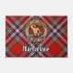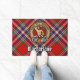 Clan MacFarlane écusson de crête entourée d'une sangle et boucle sur l'arrière - plan tartan. Texte personnalisé.