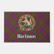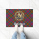 Clan MacGowan crête badge entouré d'une sangle et boucle sur l'arrière - plan tartan. Texte personnalisé.