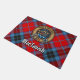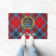 Clan MacTavish, Thomson ou Thompson badge crête entouré d'une sangle et boucle sur l'arrière - plan tartan. Texte personnalisé.
