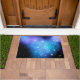 Paillasson galaxy avec une éclaboussure cosmique de nuages d'espace nébuleux bleus et violets et d'étoiles scintillantes dans un ciel nocturne noir. ♡ Idyllfire