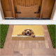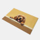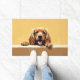 The soft warm honey gold background adds a cozy and inviting touch, perfect for welcoming entryways. Designed with extra space at the top and bottom, it allows easy personalization with names, welcome messages, or custom text—making it ideal for unique dog-themed doormats and thoughtful gifts.