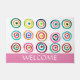 Colorful whimsical playful design of watercolor rainbow circles against a neutral background. This cute moderne Scandinavian infuenced design is simple and moderne.