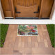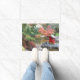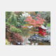 Decorative doormat that features the photo image of a colorful, autumn Japanese garden pond scene that includes a red, miniature Shinto shrine. Use indoors or in covered entryway areas. Photo: Point Defiance Park Japanese Garden