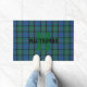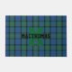 Ajoutez une petite touche de couleur à votre maison, avec ce tapis de porte en tartan de couleur bleu, vert, mauve et noir de clan MacThomas. Un monogramme vert gras d'une lettre, au milieu du tapis, a du texte noir qui le traverse, et prêt à personnaliser. Super idée cadeau.