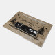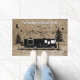 Ce tapis de portes rustique fait le cadeau parfait pour votre véhicule RV. Les mots en haut peuvent être personnalisés selon vos besoins. Quelques exemples sont "happy campers" ou "bienvenue à notre remorque" ou tout ce que vous voulez. En bas, vous pouvez ajouter votre propre nom ou mettre ce que vous voulez aussi. Le tapis de porte présente des oiseaux volant au-dessus des montagnes avec la lune et les étoiles dans l'arrière - plan et un feu de camp au premier plan.