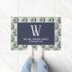 Obtenez pour la plage ! Ornez votre entrée avec cette grande natte de coquillages. Cette natte assez côtière comporte un monogramme de famille modelé par coquillages bleus de bleu marine et de blanc.