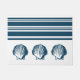 Design nautique avec coquillages bleus et décoration à rayures sur arrière - plan blanc