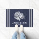 Votre cottage côtier a besoin de ce tapis de porte ! Accueillez vos invités avec cette déclaration faisant de la silhouette de corail blanc de mer. Le arrière - plan est une couleur bleu marine foncé avec un texte personnalisé en blanc de nom de famille. Ce tapis est élégant, chic, et ferait une grande impression sur les clients de votre maison, car ils sont accueillis chez vous !
