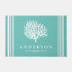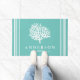 Votre cottage côtier a besoin de ce tapis de porte ! Accueillez vos invités avec ce paillasson de silhouette de corail de mer blanc et aéré. Le arrière - plan est une couleur verte de verre de mer avec un texte personnalisé de nom de famille en blanc. Ce tapis est élégant, chic, et ferait une grande impression sur les clients de votre maison, car ils sont accueillis chez vous !