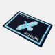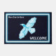 Image simple, brillante, en ligne bleue et blanche d'un Corbeau (Corvus corax) sur une image arrière - plan étoilée. La lecture de texte personnalisable, "BIENVENUE" apparaît également et il y a un endroit supplémentaire pour ajouter votre propre texte.