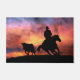 Tapis de porte de cowboy. Un cow-boy et une corde à cheval un béquille avec un beau coucher de soleil de couleur sud-ouest dans l'arrière - plan.