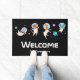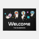 Un tapis de bienvenue avec une image d'astronautes dans des casques visibles flottant dans l'espace. Girafe, souris, chat et lapin. Si adorable et amusant.