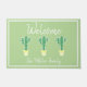 Matelas à thème cactus avec trois plantes en pots de cactus sur vert clair et votre nom de famille personnalisé.