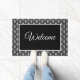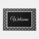 Tapis de porte avec un design élégant en noir et blanc Damas. Customisez ce tapis ou achetez tel quel.