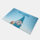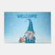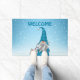 Un joli gnome en costume bleu avec des flocons de neige sur un arrière - plan bleu et décoration de Noël