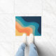 Ondes de style rétro illustration motif géométrique avec décor rayures jaunes, orange, bleues, bleu marine et turquoise