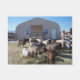 Chèvres et moutons se rassemblent devant la grange pour profiter de leur alimentation hivernale de foin sur ce paisible Ranch du Nevada.