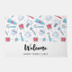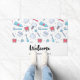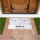 Un tapis de bienvenue avec un motif à thème dentaire. Avec des illustrations colorées de dents, brosses à dents et divers outils dentaires.