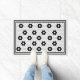 Ce joli tapis de porte en faux carreaux noir et blanc avec une bordure verte gris est parfait pour n'importe quelle maison. Ses lignes épurées, ses couleurs simples et sa motif vintage sont intemporelles et polyvalentes. Conçu sur un tapis en caoutchouc qui est durable et facile à nettoyer. Parfait pour les maisons côtières et contemporaines.