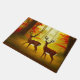 Tapis de porte sur l'illustration de deux cerfs, une rondelle et une colombe, contre un arrière - plan de bois d'automne, dans les tons brun, jaune doré et orange rouille