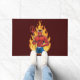 Devil with trident in the fire, Evil laughing devil, Angry red demon illustration, muscular demon with glowing eyes, strong sports cartoon character,