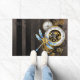 Antique cadran avec or et laiton, décoré de libellules mécaniques sur arrière - plan brun rayé. Du steampunk.