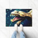 Ce tapis porte dinosaure a un dinosaure effrayant dessus.