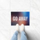 La natte de non-particulier-accueil drôle avec DISPARAISSENT LOIN écrit dans de grandes lettres blanches audacieuses à travers brun et le bleu.