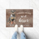 Méfiez-vous du baiser humide" Tapis de porte Dog Rottweiler posé sur un faux arrière - plan rustique. Visitez notre boutique pour voir un large assortiment de pains pour chiens