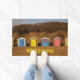 Matelas avec photo de cabanes de plage colorées et ciel bleu à Saunton Sands, Devon, Angleterre.