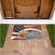 Doormat montré est un très grand visage d'un aigle chauve américain superposé devant l'American Stars and Stripes U.S. Flag. Un texte sous la tête d'aigle est montré en bleu marine et dit "Dieu bénisse l'Amérique" et "Votez républicain". Une décoration patriotique parfaite pour accueillir les invités dans votre maison ou utilisé dans votre bureau, ou simplement pour encourager tous ceux qui visitent votre porte pas. La taille indiquée est de 24" x 36" Personnaliser ce tapis ou acheter tel quel.
