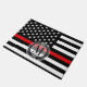 Célébrez les légions de sapeurs-pompiers masculins et féminins à travers l'Amérique avec cette ligne rouge mince drapeau patriotique de sapeur-pompier de style.