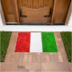 Ce tapis de porte italien personnalisé présente une image complète du drapeau de l'Italie dans un dessin abstrait à l'huile. La couleur vive de l'Italie en rouge, blanc et vert, sont imprimés verticalement sur le coussin, ressemblant au drapeau.
